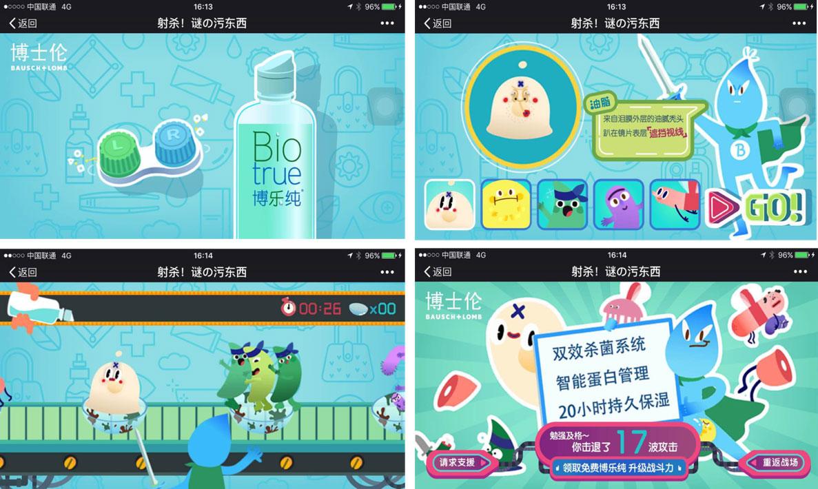 同时,我们也通过一些实验性的创意物料 (幽默视频、游戏 H5 等),在场景与功能两个维度上进行传播,帮助焕新后的博士伦夺回在年轻阵营中的声量与喜好度。